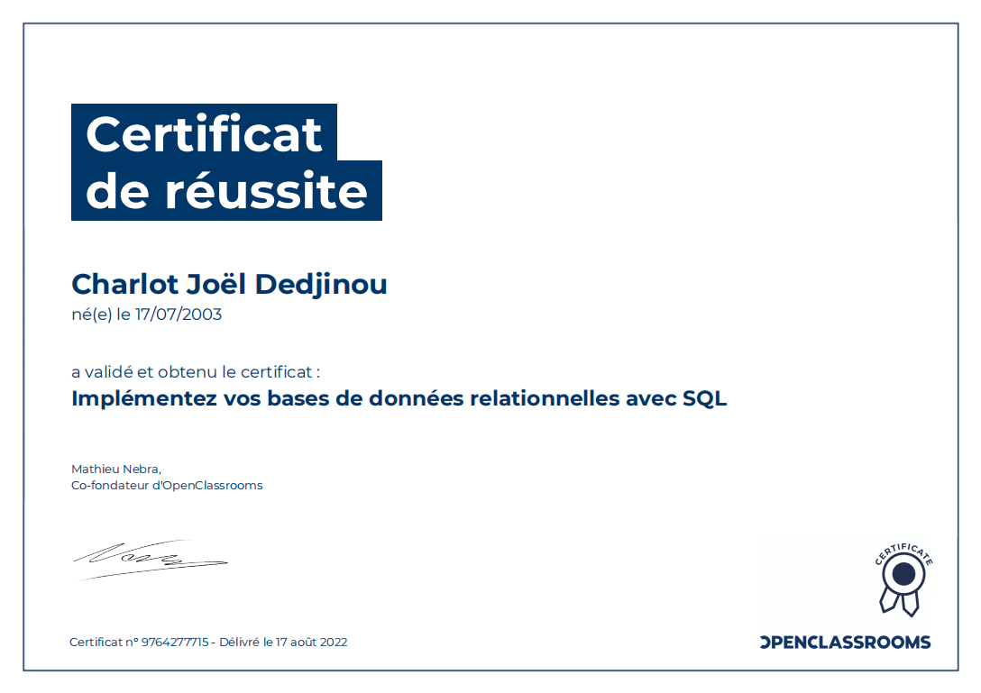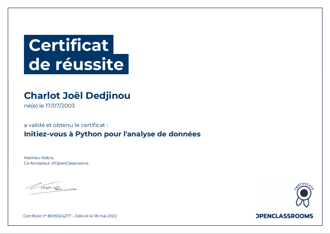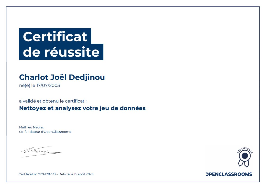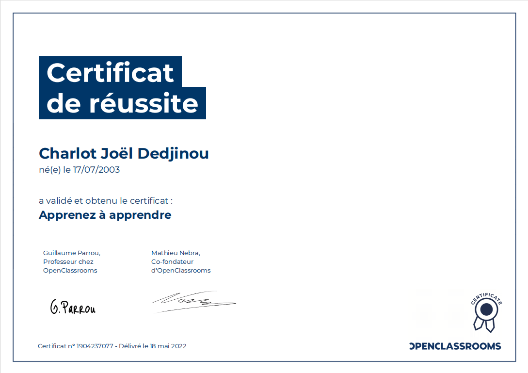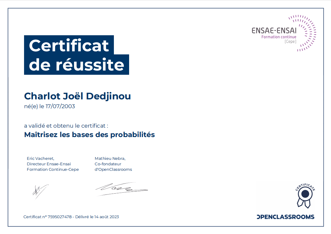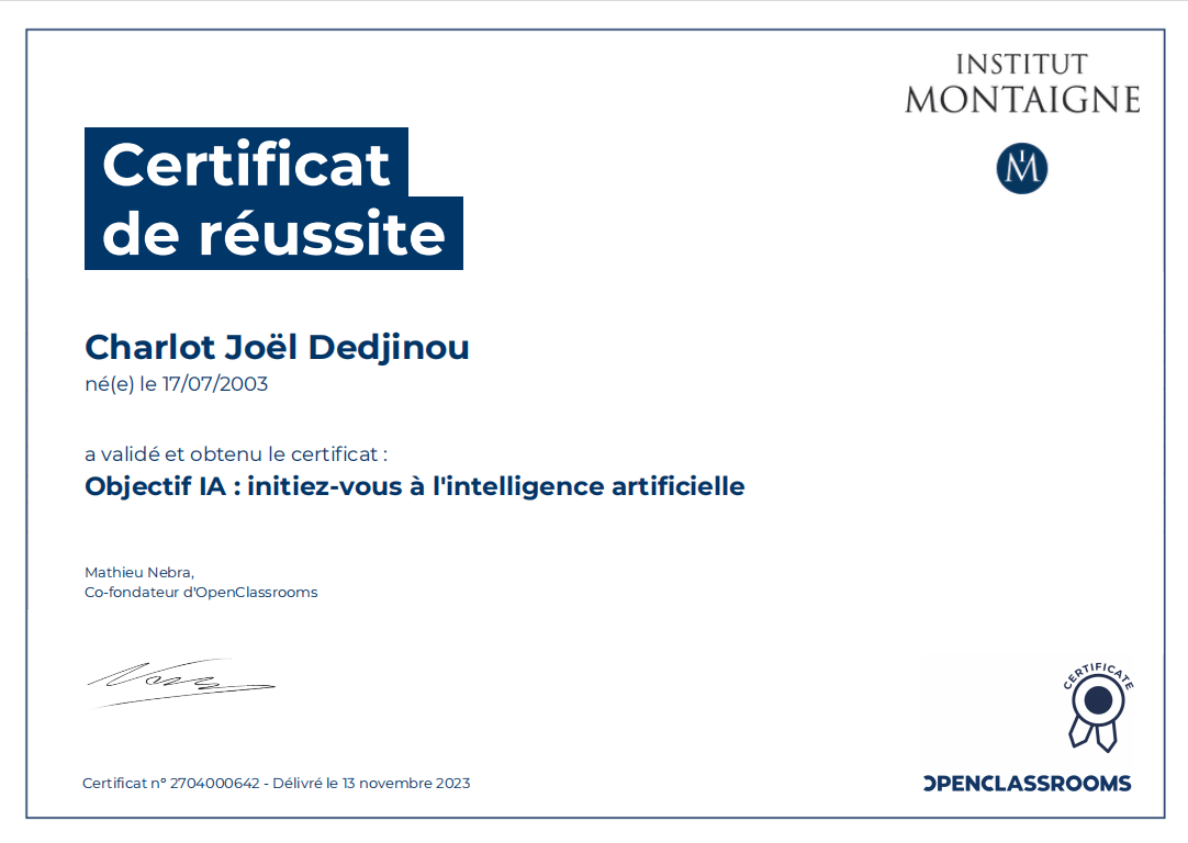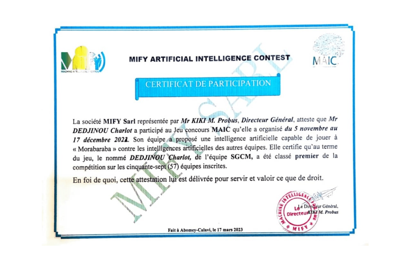 Oct 2021 - Oct 2024Institut de Formation et de Recherche en Informatique (IFRI), Abomey-Calavi, Bénin